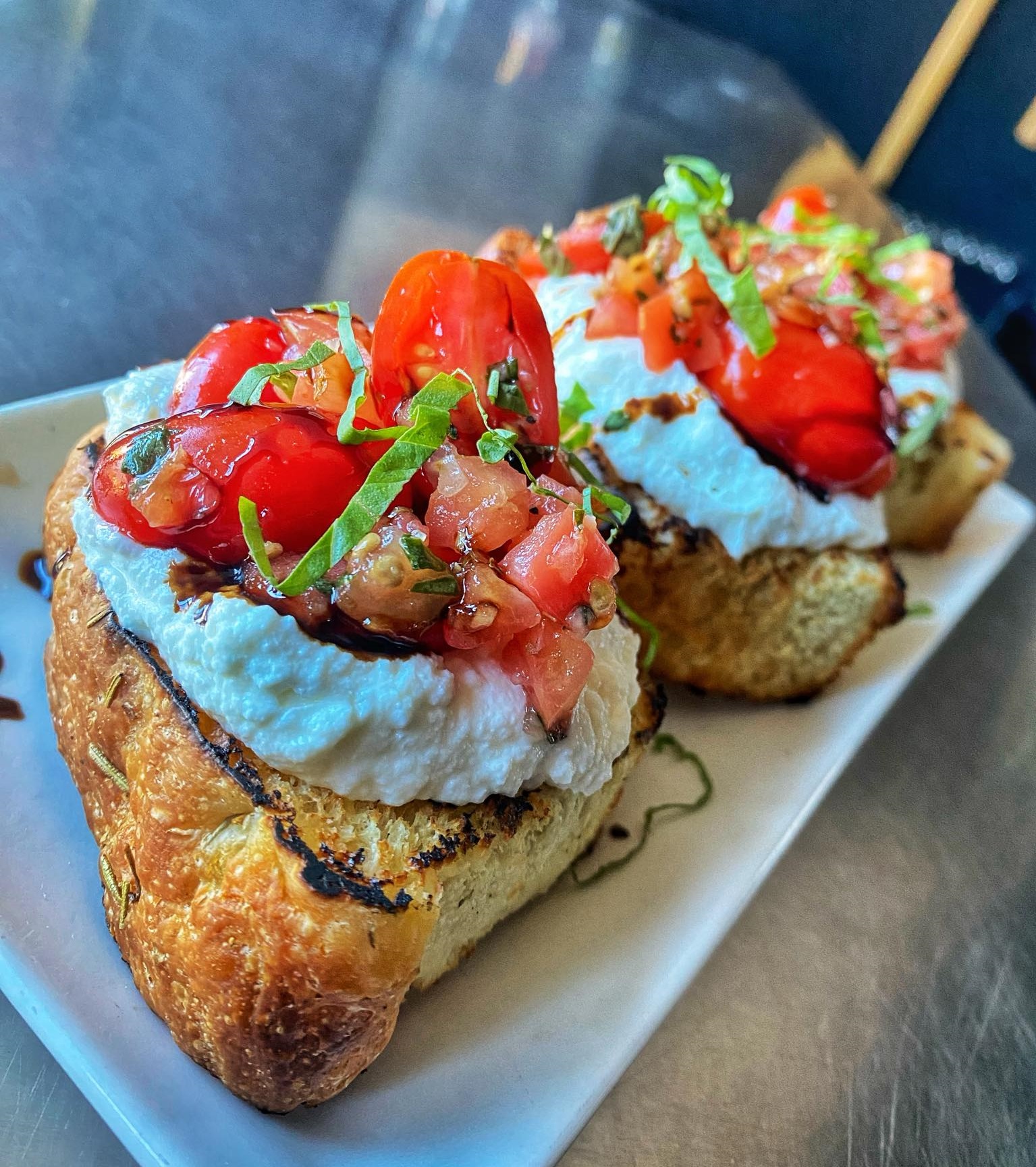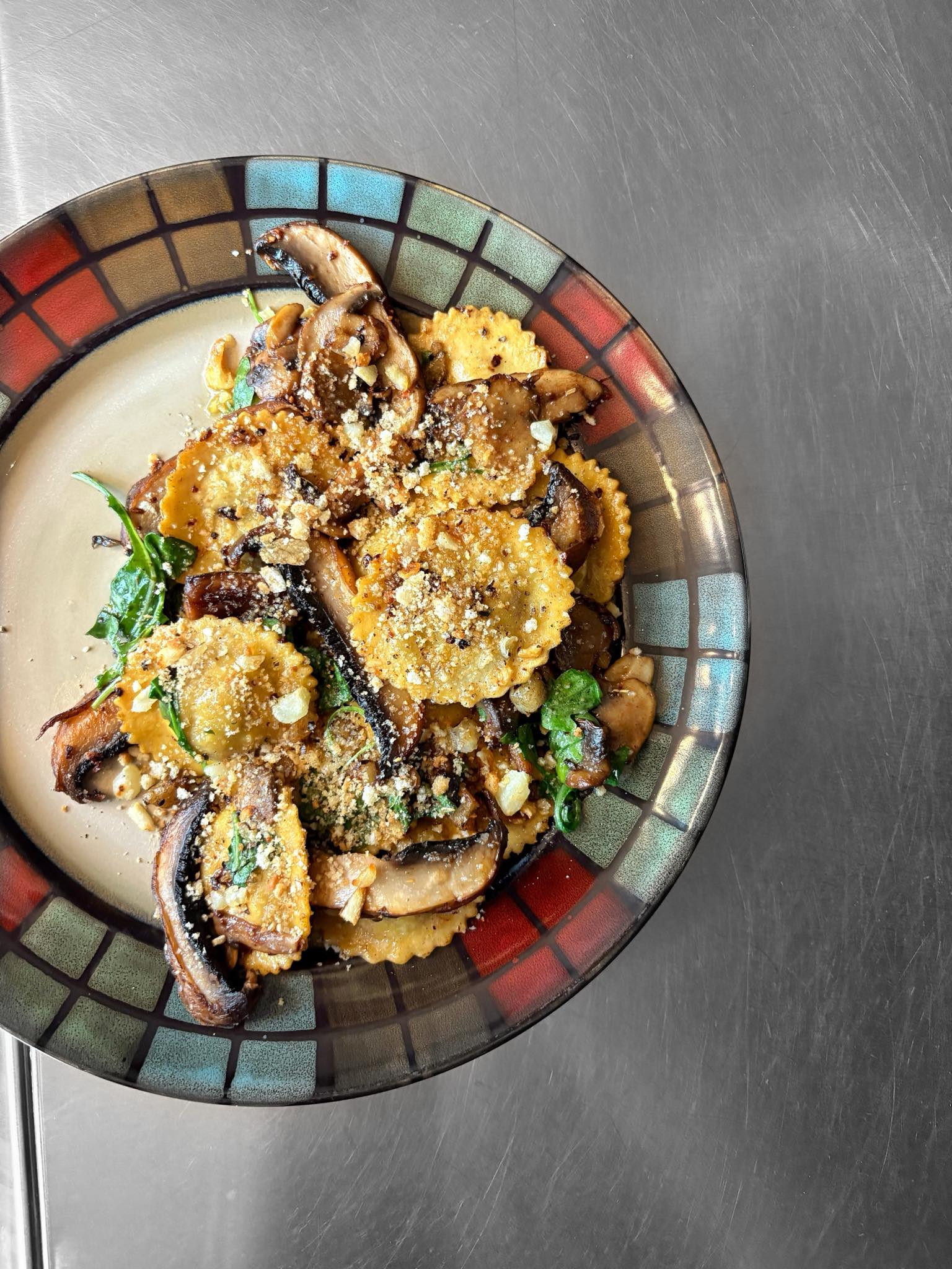 FORAGER | $25 - button & portabello mushroom, roasted garlic, aged white cheddar, whipped ricotta, truffle oil, frush arugula, garlic cream